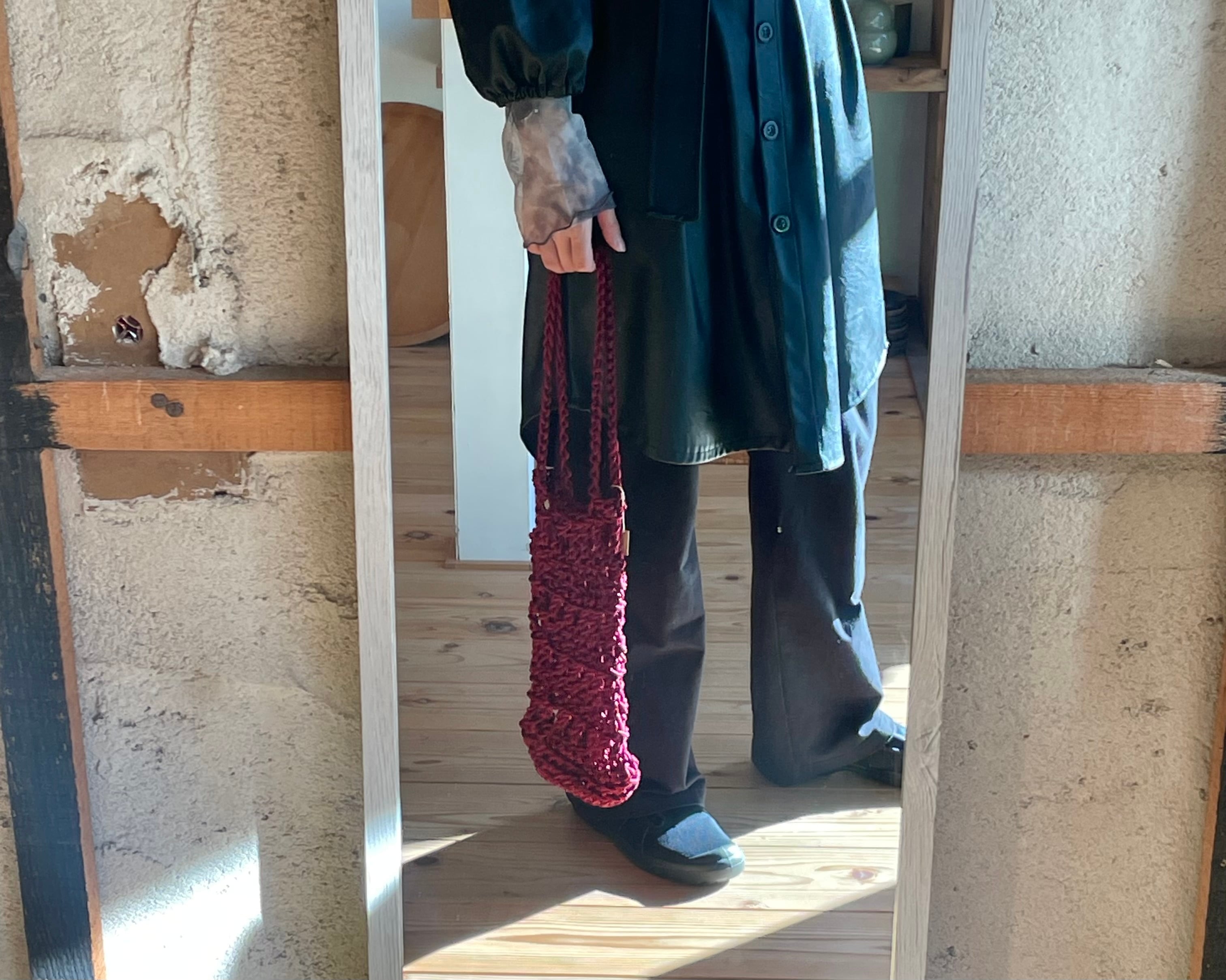 (Maëlle Maud マエル・モード) 〈編む〉という技法を用いて 様々な素材を扱う。 ニットなのか バスケットなのか あるいはネットなのか。 あらゆる感触と出会いながら ものの成り立ちから行く先までを 使い手と共に考える。